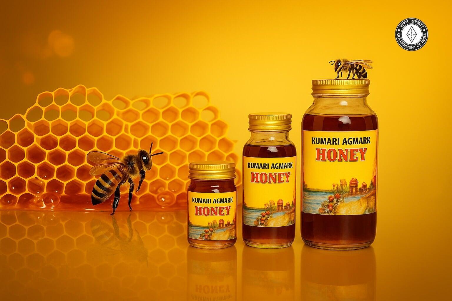 The plastic bottle contains the same pure honey, but the packaging material does not fall under AGMARK-approved criteria.